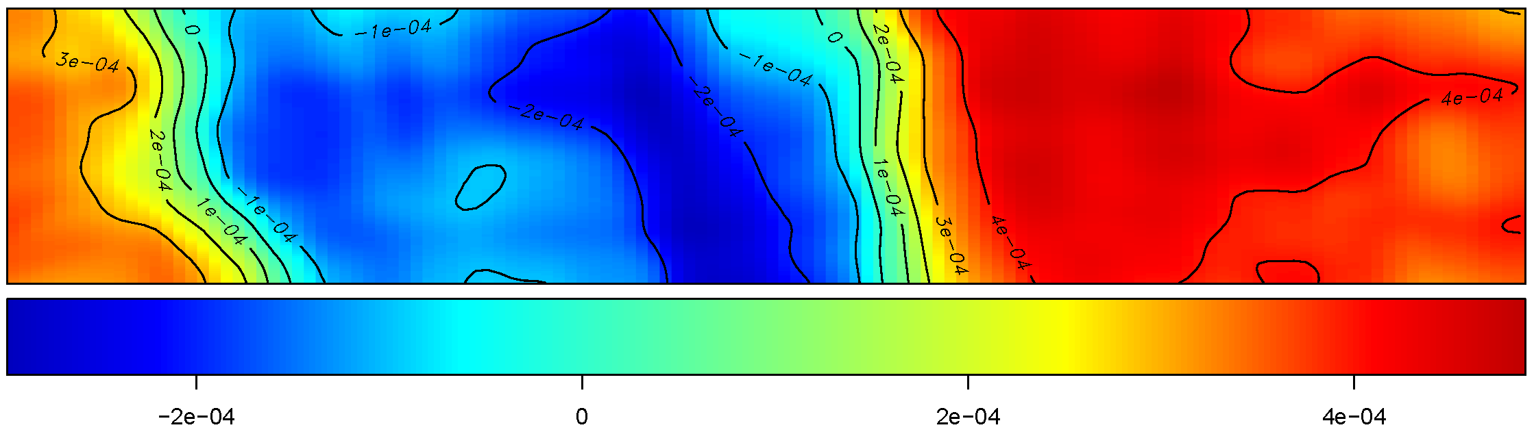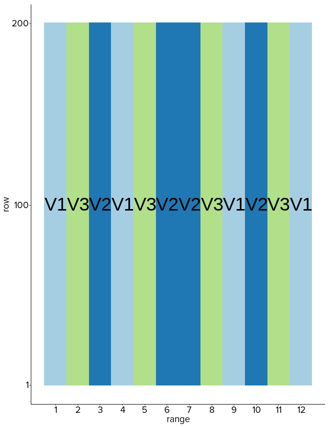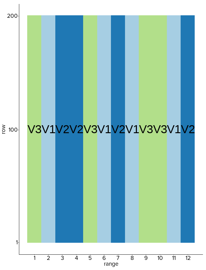 Suppose the entire field is partitioned into \(p\) PEs, and the \(j\)th PE consists of \(n_j\) grid points, such that the total number of grid points in the experiment is \(n=\sum_{j=1}^p n_j\). Let \({y}_j\) be the \(n_{j} \times 1\) vector of observed responses corresponding to the \(j\)th PE. The LMM for the combined vector of data \({Y} = \lbrack{y}^\top_{1}, \ldots, {y}^\top_{p}\rbrack^{\top}\) across all PEs is given by \[\begin{equation}\label{eq:modelmatrix} {Y} = {X}{\tau} + {Z}{u} + {e}, \end{equation}\] where \({\tau}\) and \({u}\) are \(t\times 1\) and \(b \times 1\) vectors of fixed and random effects, respectively. The matrices \({X}\) and \({Z}\) are \(n\times t\) and \(n\times b\) design matrices corresponding to the fixed and random effects, respectively. The \(n\times 1\) vector \({e}\) provides the combined residual effects from all PEs.